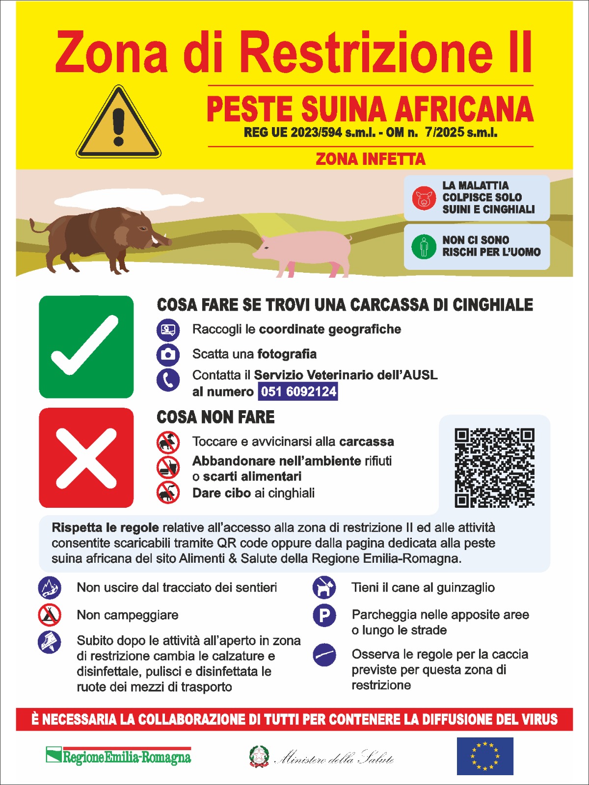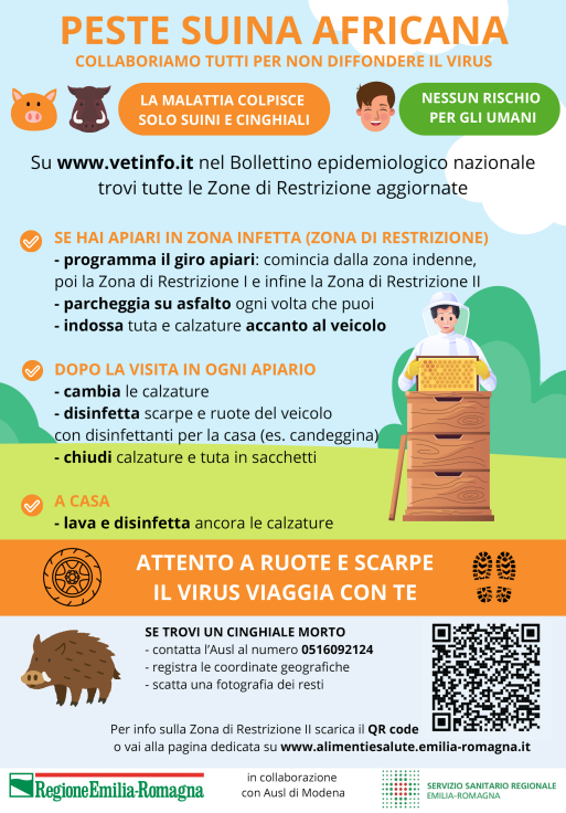 La Regione Emilia-Romagna chiede la collaborazione di tutte e tutti per rafforzare la prevenzione e la sorveglianza sul territorio: la segnalazione tempestiva delle carcasse di cinghiale è fondamentale per limitare la diffusione della malattia.